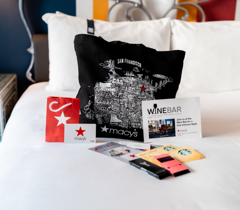 Score a $100 Macy's gift card with your overnight stay at The Marker. Your package includes early check-in and late check-out (subject to availability), plus a Macy's tote loaded with a mimosa flight at their wine bar, Starbucks coffee, a personal styling session, exclusive discounts, and fragrance samples.